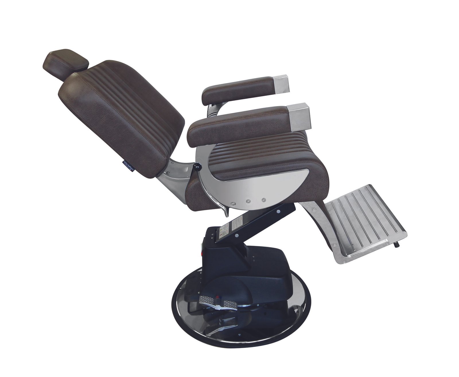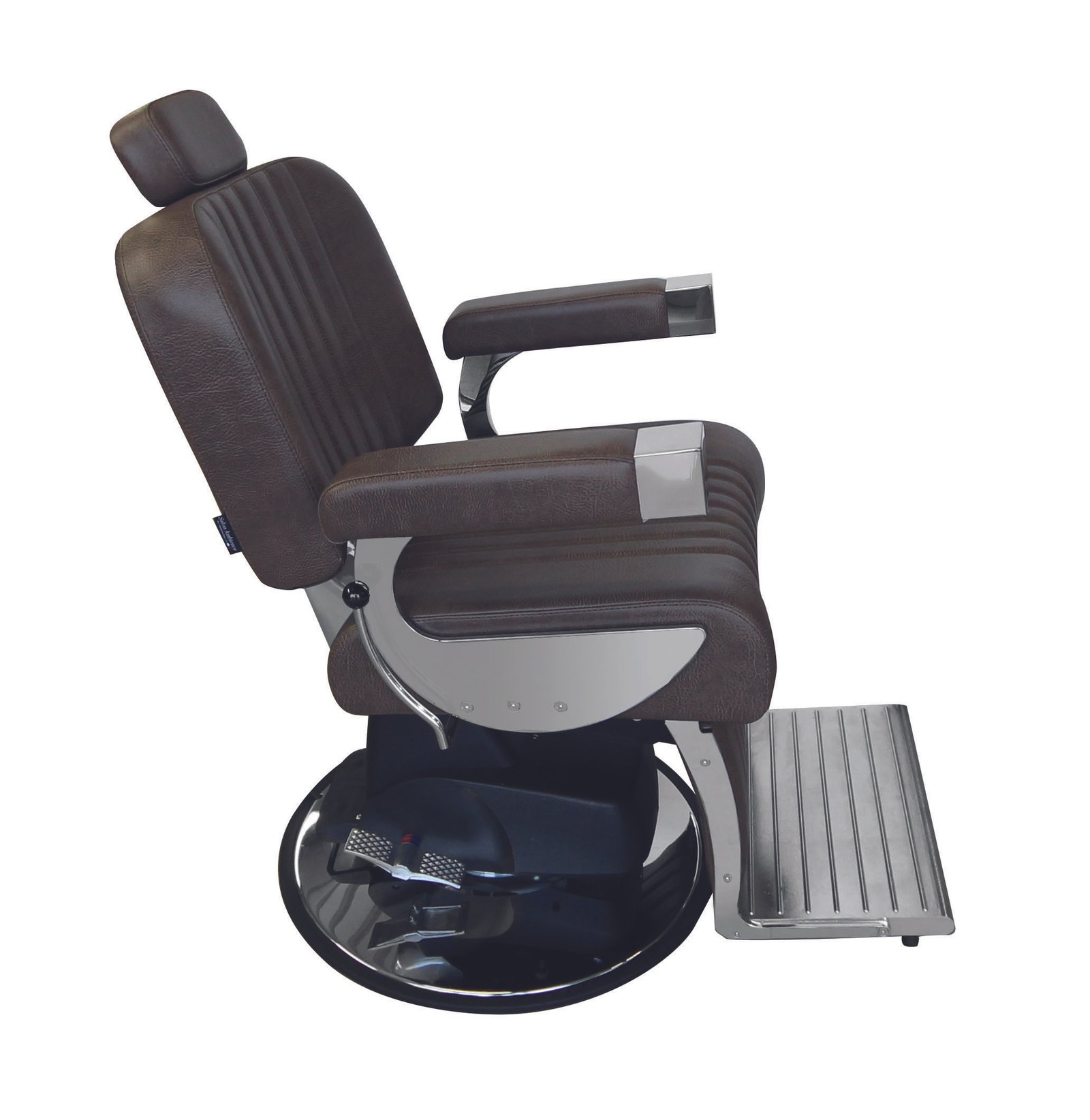 Le nouveau fauteuil Executif pour homme apporte le style "old school" aux salons de coiffure d'aujourd'hui. Le siège et le dossier magnifiquement modelés offrent un confort surprenant, avec la qualité de la tapisserie d'ameublement artisanale italienne et les détails des coutures immédiatement évidents. Le dossier inclinable et le repose-jambes relevable, ainsi que l'appui-tête réglable, offrent un confort maximal au client. Les accoudoirs en métal chromé et le repose-jambes en aluminium sont la touche finale qui complète cette incroyable chaise de barbier.